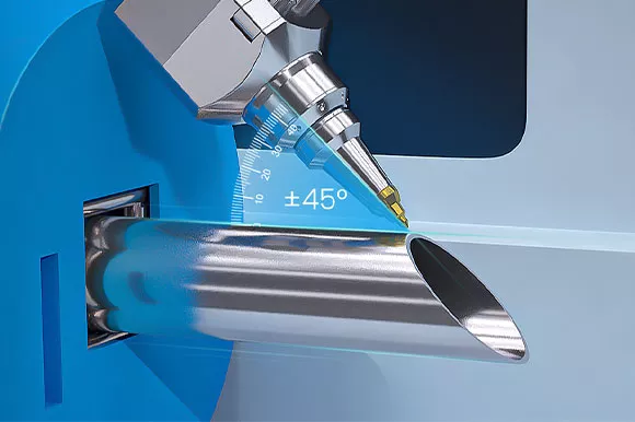 Advanced bevel cutting head enables precise angled cuts on tubes and pipes in a single operation.